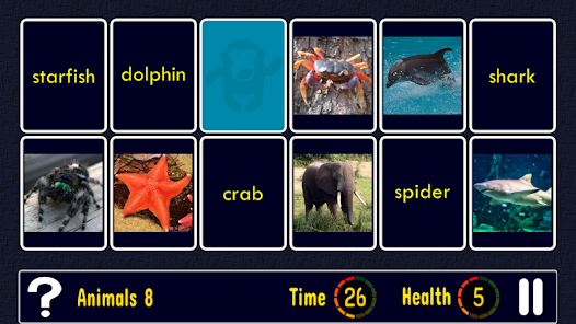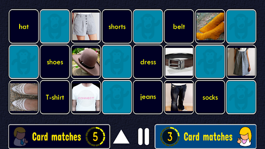 お友達とゲームをプレイし、同時に英語を学ぶ楽しさを持っています! Match Up Learn English Wordsは、2人用のゲームを持っています。 2人用ゲームでも画面のフリップモードを持っています - テーブルの上に携帯電話やタブレットでゲームをプレイすると、画面上の言葉と写真があなたの友人に直面して振り向くます!