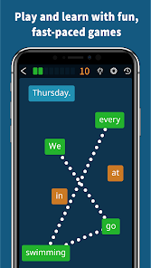 ユニークでエキサイティングな学習方法で文章を作成し、単語をスワイプし、英語の文法を習得しましょう! ボキャブラリーを拡張してリスニングとスピーキングのスキルを向上させるレッスンでゲームをプレイしましょう。