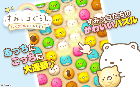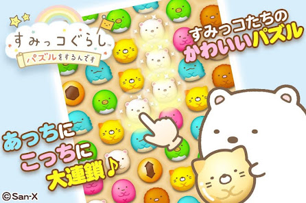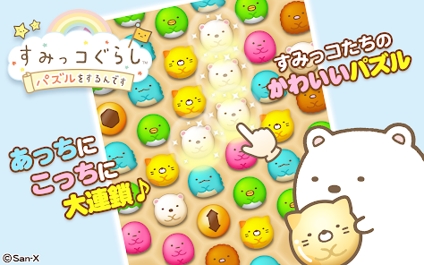 癒し系の可愛いキャラクター4マッチパズルアプリ『すみっコぐらしパズルをするんです』をみんなで楽しんでね