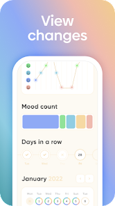 毎日気分を記録します。投稿履歴を表示します。 1日を通して変化に注意してください。何がそれに影響するかを知ってください。これは、ストレスの多い状況にうまく対処し、感情を理解するのに役立ちます。