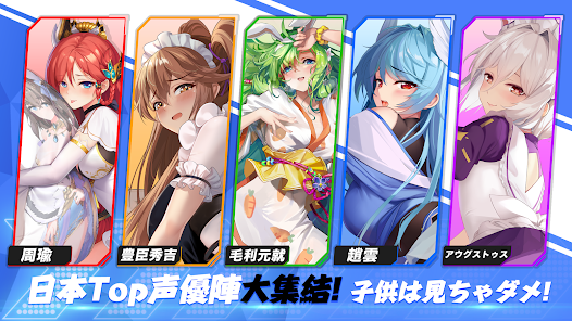 日本の有名な声優を多数起用したキャラボイスと精美なイラストで、美少女が揃った乱世にタイムスリップして、冒険を始めましょう。