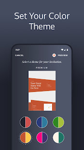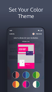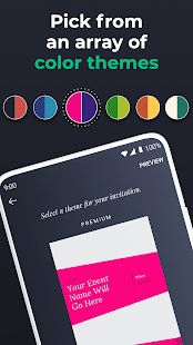 あなたの詳細で招待状をカスタマイズし、カスタム カラー テーマを選択し、独自の写真を追加するか、美しい無料の写真やビデオの巨大なギャラリーから選択します。