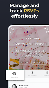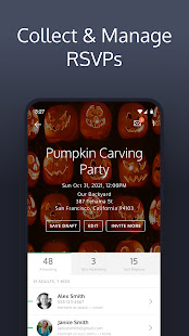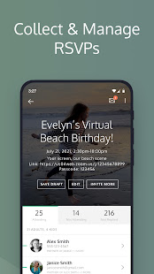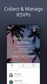 テキストまたは電子メールのゲストへのスタイリッシュなカスタム オンライン招待状を作成し、出欠確認を管理します。誕生日、ベビー シャワー、休日、結婚式、その他のイベントのための環境に優しい招待状。