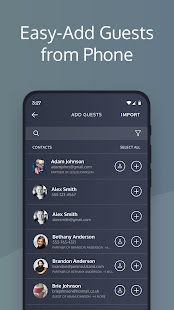 使いやすいツールでアドレス帳をインポートします。ホスト、ゲスト、またはグループ全体の間のプライベート メッセージで、招待リストの全員に通知します。