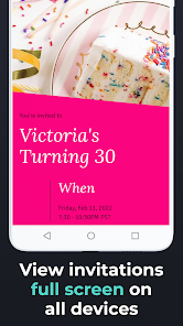 Web、携帯電話、タブレットで視覚的に魅力的な独自の美しいフルスクリーンの招待状をデザインして作成します。