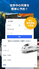 • 列車ドイツ、韓国、中国本土、中国台湾、イギリスの列車をすべて手間なく簡単に予約しましょう。