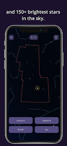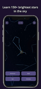 - 180 のレベルで、150 以上の最も明るい星についての知識を教え、訓練し、テストします。