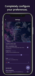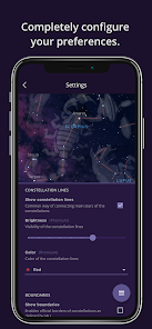 - 好みに合わせてゲームを完全に構成します。音や振動の調整、空の見え方の変更(星、イラスト、星座線、星座の境界線、赤道グリッド線、フォーカスリング、天の川など)など。