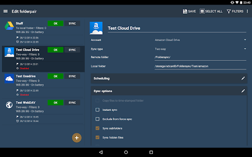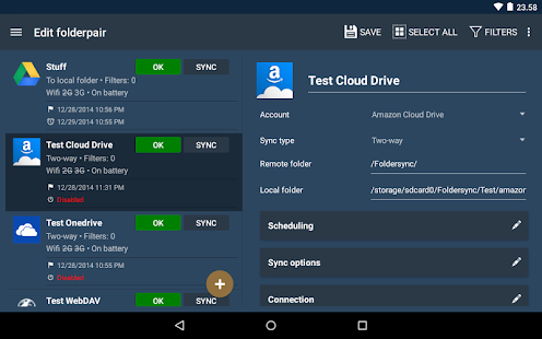 フォルダーシンクロ には、ファイルをローカルおよびクラウドで管理できる完全なファイルマネージャーが含まれています。クラウド/リモートアカウントのファイルをコピー、移動、削除します。Amazon S3 でのバケットの作成/削除のサポート。電話からファイルをアップロードおよびダウンロードします。すべて対応しています。