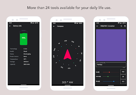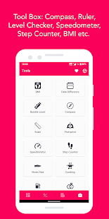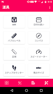 👉BMI、バブルレベル、コンパス、定規、日付差、速度計、歩数計、靴のサイズ測定、調理測定、リング測定、ワイヤー測定、パスワード作成、暗号化、分度器、金属探知機、ワールドタイム、モールスコンバーター、RGB/HEX カラーコンバーター、ケースコンバーターなど。