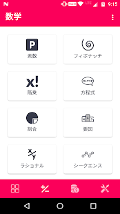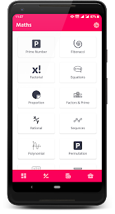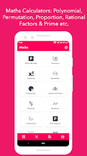 👉素数、フィボナッチ、階乗、方程式、比例、因数と素数、有理数、算術と幾何数列、多項式、順列、数、2 進数など。
