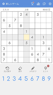 ✓重複を強調表示行、列、ブロックで数字が繰り返されないようにします。