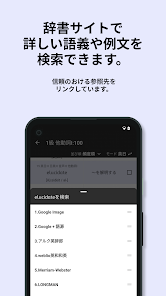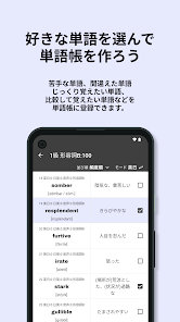 アプリ内の練習とテストを繰り返し、ユーザーが自由に振り分けられる単語帳で苦手単語を復習できます。