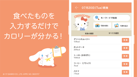 カロリー計算だけでなく炭水化物などの9種類の栄養素をもとに役に立つアドバイス・可愛い応援をお届けします!