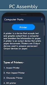 In this application you learn about how to assemble computer and computer parts and its use. From