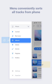 - Music categories. Play music by Albums, Artists, Genres or Folders.