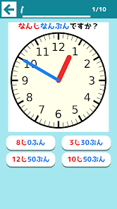 「いま何時?」をクイズ形式で楽しみながら学習します。