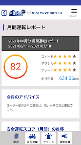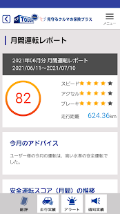 急アクセル・急ブレーキ・速度超過の発生頻度等の運転傾向について、1回の運転ごとおよび1か月ごとに運転診断結果としてレポートをご提供します。