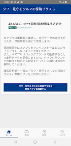 本アプリは、車載器とお持ちのスマートフォンで先進的なサービスをご提供するためのあいおいニッセイ同和損保「タフ・見守るクルマの保険プラスS」の車載器接続用アプリです。