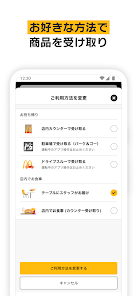 テーブルにスタッフがお届け(テーブルサービス)、カウンターで受け取る、テイクアウト、パークゴー、ドライブスルー のいずれかをお選びください。