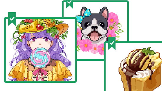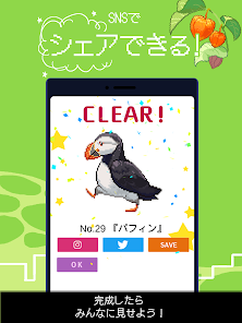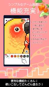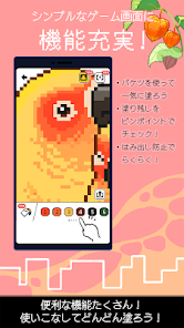 レトロでかわいい可愛いドット絵が250種類以上!他の塗り絵アプリにはない巨大なイラストのビックモード、塗りやすいツールも盛りだくさん。