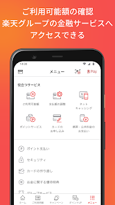 ご利用可能額の確認や楽天グループの金融サービスへのアクセス、アプリの設定など