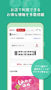 お店でのお買い物のお支払い時に、レジにて当アプリをご提示いただくと、楽天ポイントが税抜200円ごとに1ポイント貯まります。