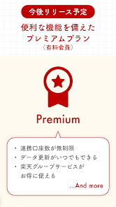 プレミアムプランの詳細については楽天家計簿アプリ内でお知らせいたしますので、今しばらくお待ちください。