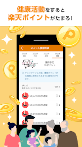 1日4,000歩以上歩くと、翌日にスタンプが1個押せます毎日スタンプを押して7個貯めると楽天ポイントが3ポイントもらえます。