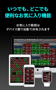 最大1,000銘柄までお気に入り銘柄を登録できます。リアルタイムに株価、板情報を閲覧できます。お気に入りはWEBと同期しています。