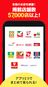 掲載店舗数は全国で56,000店舗以上。スーパーに限らずドラッグストアや均一ショップ、クリーニング、ホームセンター、コンビニなど毎日のお買物、ショッピングに役立つお店の情報が満載です
