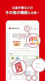 ポイントカードの表示、クーポンの取得、イベント情報、キャンペーン情報などのお得な情報の確認、店舗検索、お薬手帳アプリ連携などがご利用できます。