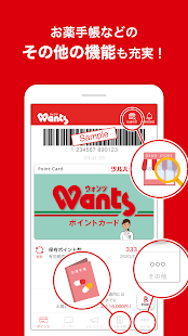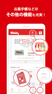 ポイントカードの表示、クーポンの取得、イベント情報、キャンペーン情報などのお得な情報の確認、店舗検索、お薬手帳アプリ連携などがご利用できます。