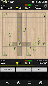・千日手に対して一般的なボードゲーム(本将棋やチェス)よりも厳しい条件で禁じ手を設定しています。人間プレイヤー、CPUプレイヤー双方に同じルールが適用されます。