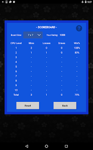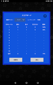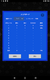 ・スコアボードで盤面サイズ毎の戦績を管理。レーティング機能であなたのスキルを判定します。
