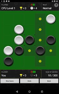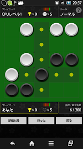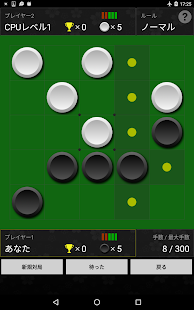 交互に駒を動かし相手の駒を挟んで取るだけ。コンピュータのレベルは全部で10段階。対人戦も可能です。