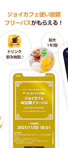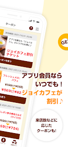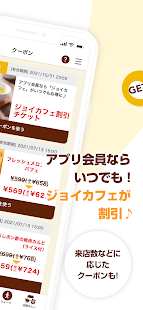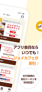 ジョイカフェをお得な価格でご利用いただけるジョイカフェチケットを、アプリをインストールしていただいた皆さまにプレゼント!インストール後すぐにお使いいただけます。