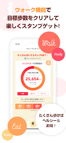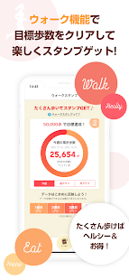 歩数計と連携し、目標歩数を達成するとスタンプがたまります。