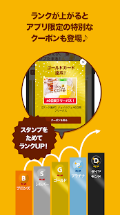 5スタンプ~10スタンプ毎に人気の「ポテトフライ」または「ジョイカフェ」の無料クーポン他、カードランクが上がるほど「選べるフリーパス」「アプリ限定のスペシャルメニュー」などさらにバージョンアップした豪華クーポンをご用意しています。