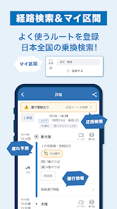 ・路線の遅れ等の運行情報を考慮した経路検索ができますJR西日本エリア内の路線に対応しており、その他の路線については非対応。