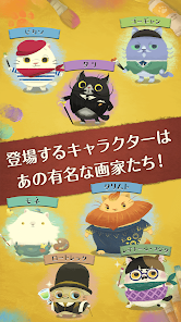 ニャッホの周りに集まるのは、ピカソ、ゴーギャン、ダリ、モネなど誰もが聞いたことのある画家たちが個性豊かなキャラクターの猫となって登場。