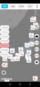 ■雨雲・警報・台風・河川情報に画面上部のそれどれのボタンをタップするだけで切り替えることができます。