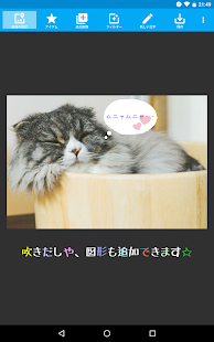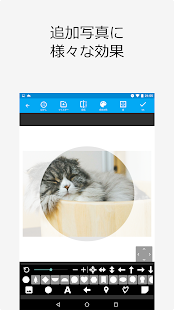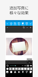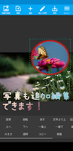 とても簡単に、写真に文字や追加写真、吹きだし、図形を入れることができます。