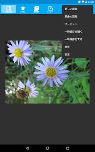メインの画像は、写真とキャンバスの2つがあり、切り抜きやフィルターが適用でき、縁に色やぼかしの付加、他にも反転ができます。