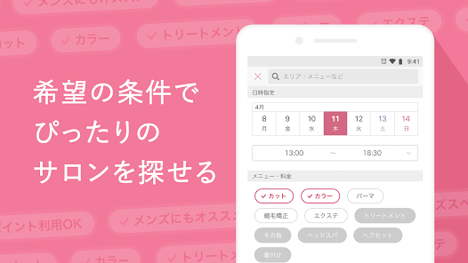 ヘアサロンやネイルサロン、エステサロンやリラク・マッサージも簡単に検索予約できます。