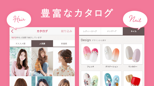ヘアカタログ・ネイルカタログの検索から、そのままサロンの予約も可能です。
