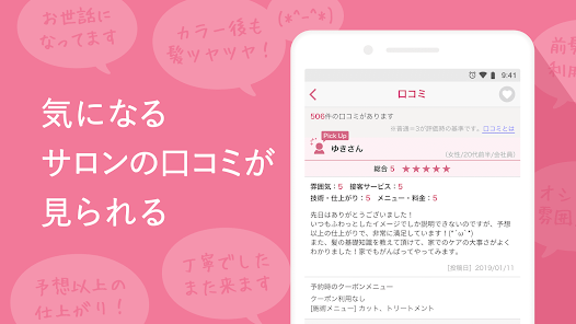 約2,000万の口コミを掲載しているので、サロンの情報が事前にわかります。