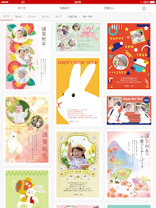 ・ポップな干支キャラクターデザインではなく、書道のようなフォントを用いてシンプルな年賀状デザインにするため、文字も編集できる年賀状ソフトのような年賀状作りアプリが欲しい
