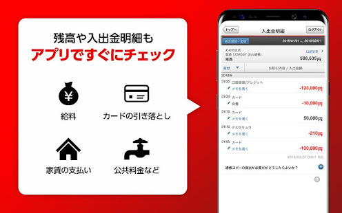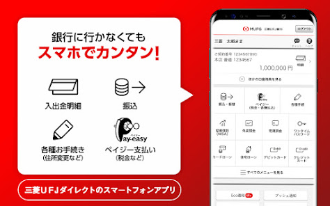 三菱UFJ銀行が提供するインターネットバンキング(三菱UFJダイレクト)のスマートフォンアプリです。