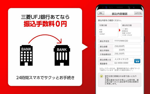 ・利用にあたっては三菱UFJ銀行ホームページに掲載しているスマートフォンアプリのご利用における注意事項等を確認してください。
